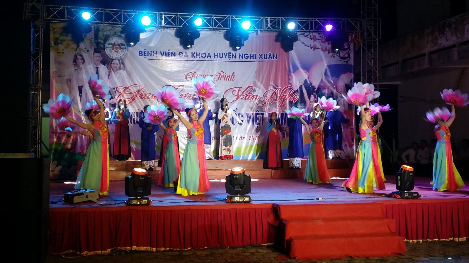 Tại đêm liên hoan, BSCKII. Hà Thanh Sơn Bí thư Đảng ủy - Giám đốc bệnh viện khai mạc đêm liên hoan văn nghệ và căn dặn cán bộ công nhân viên bệnh viện vui văn nghệ không quên nhiệm vụ, xứng đáng lời dạy của Bác Hồ: “Lương y như từ mẫu”.
