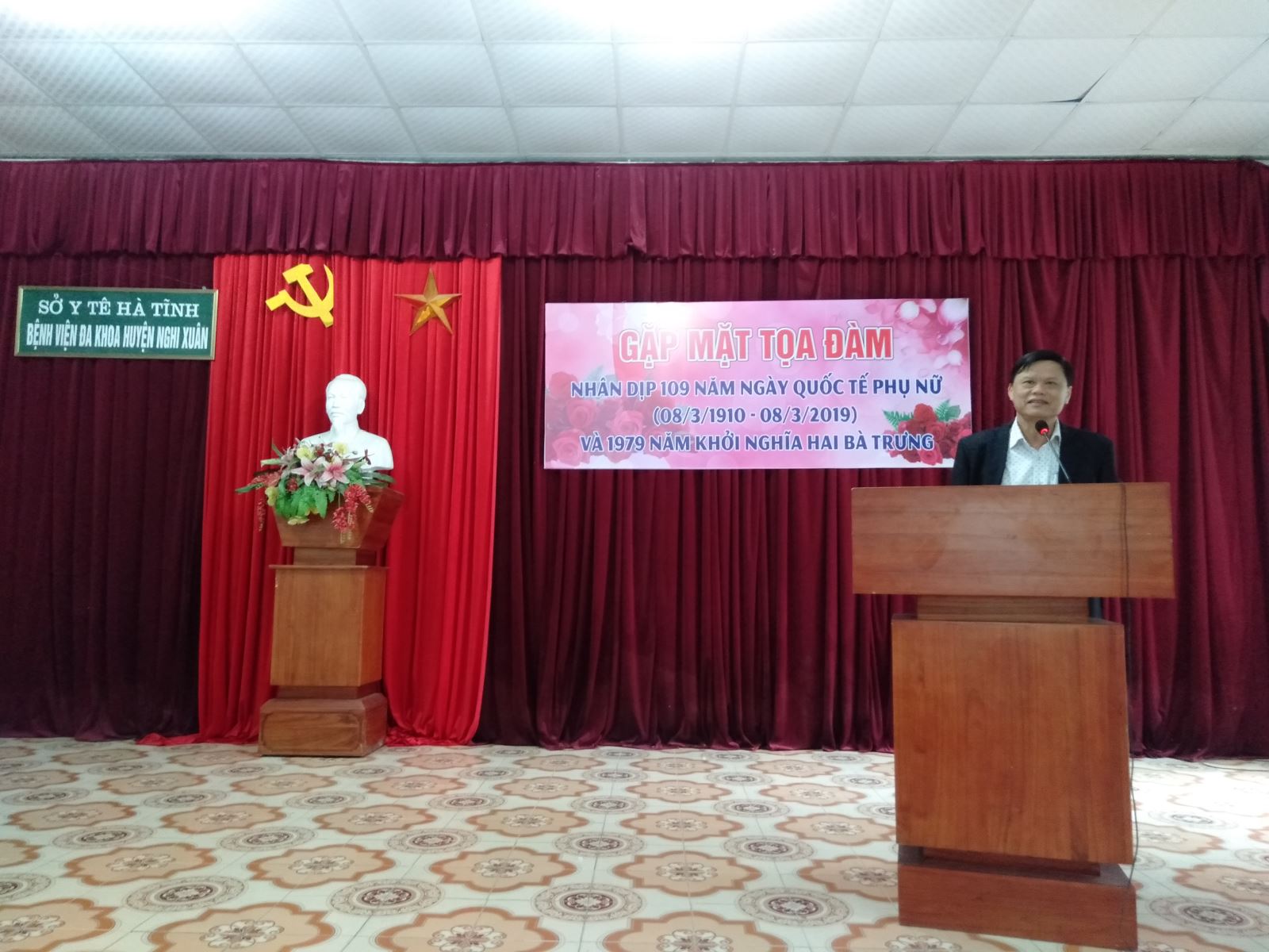 Đại điện cho ban chấp hành công đoàn, Ban nữ công Bệnh viện đa khoa Nghi Xuân, đồng chí Trần Thị Tân Hương - Trưởng ban nữ công đã ôn lại lịch sử ngày 8/3 và cuộc khởi nghĩa Hai Bà Trưng. Đồng chí nhấn mạnh: Trong thời gian qua, chị em phụ nữ đơn vị luôn khẳng định được vai trò quan trọng và có những đóng góp lớn lao cho sự phát triển vững mạnh và toàn diện của bệnh viện, của ngành các đồng chí luôn gìn giữ và phát huy phẩm chất đạo đức trong sáng của nữ cán bộ, viên chức ngành y, sống giản dị, đoàn kết giúp đỡ nhau trong cuộc sống, công việc, là những tấm gương vượt khó, giàu nghị lực nhiều chị em đã đạt danh hiệu giỏi việc nước, đảm việc nhà, hàng năm có nhiều chị em đạt danh hiệu chiến sỹ thi đua cơ sở, giấy khen của Giám đốc sở y tế… Để có được những thành quả đó là cả một quá trình học tập, rèn luyện, phấn đấu không biết mệt mỏi, gánh nặng gia đình, chăm sóc con cái, các chị em vẫn khắc phục khó khăn hoàn thành tốt mọi nhiệm vụ, tinh thần, trách nhiệm, nghị lực của chị em thật là đáng trân trọng và cảm phục, tự hào là những người phụ nữ của Bệnh viện đa khoa Nghi Xuân. Họ là những người phụ nữ trung hậu, đảm đang, là những giương sáng “giỏi việc nước, đảm việc nhà”.
