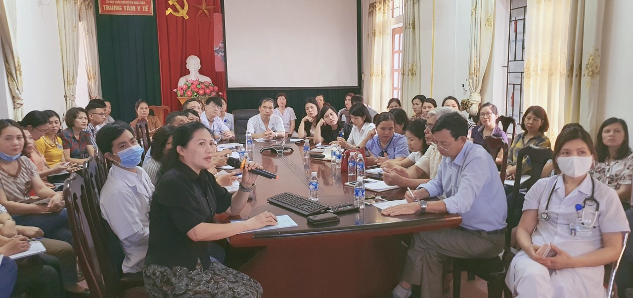 Thực hiện kế hoạch số 1099/KH-SYT ngày 13/4/2021 của Sở Y tế Hà Tĩnh về việc tiêm Vắc xin phòng Covid-19 đợt 1 năm 2021 trên địa bàn Hà Tĩnh. Tham gia buổi tập huấn có Lãnh đạo Trung tâm Y tế, Khoa Kiểm soát bệnh tật, Khoa YTCC, các cán bộ y tế tham gia đón tiếp, khám sàng lọc, trực tiếp tiêm, theo dõi sau tiêm, đội cấp cứu và Trưởng trạm Y tế, thư ký chương trình TCMR các xã, thị trấn.