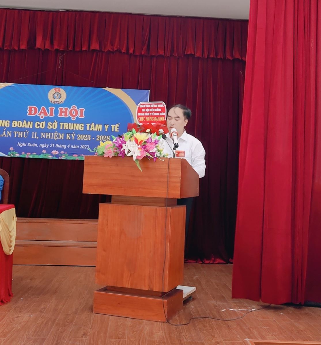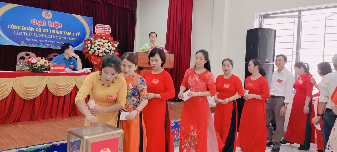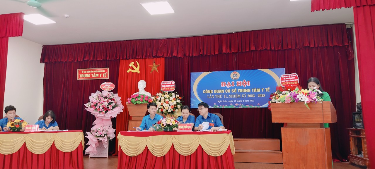 Với chủ đề" Tiếp tục đổi mới nội dung và phương thức hoạt động của Công đoàn; phát huy dân chủ, đoàn kết, sáng tạo, huy động hiệu quả các nguồn lực xây dựng tổ chức Công đoàn vững mạnh góp phần xây dựng Trung tâm Y tế huyện Nghi Xuân đổi mới và phát triển bền vững". Các đại biểu tham dự Đại hội đã tích cực đóng góp các ý kiến nhằm mục tiêu chung là xây dựng và phát triển Trung tâm, cũng cố và phát huy vai trò tuyến đầu của trạm y tế xã, thị trấn; các giải pháp nhằm đem lại quyền lợi chính đáng cho người lao động...