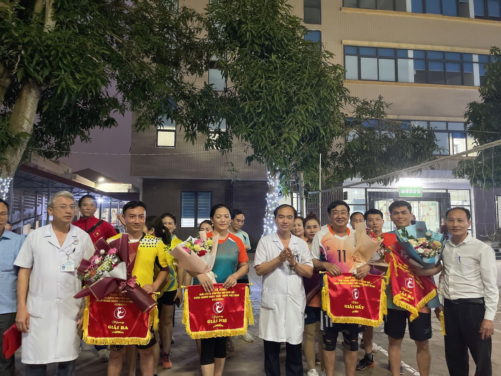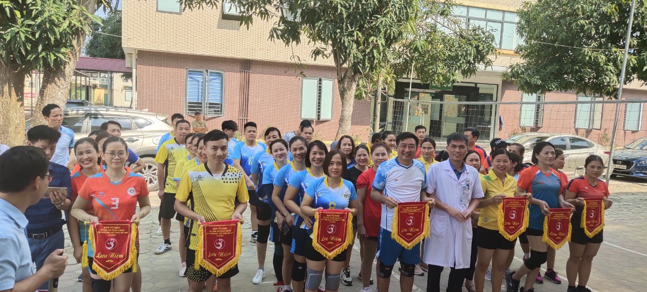 Tham gia giải bóng chuyền hơi có 7 đội: Cụm 1 gồm Trạm Y tế các xã (Cương Gián, Cổ Đạm, Xuân Liên, Xuân Thành, Xuân Mỹ); Cụm 2 gồm Trạm Y tế các xã ( Xuân Hội, Đan Trường, Xuân Phổ, Xuân Hải, Xuân Yên, TT Tiên Điền); Cụm 3 gồm Trạm Y tế các xã (Xuân Lam, Xuân Hồng, Xuân Lĩnh, Xuân Viên, Xuân An, Xuân Giang); Khối Hậu cần; Khối Nội; Khối Ngoại và Khối Dự phòng - Dân số.