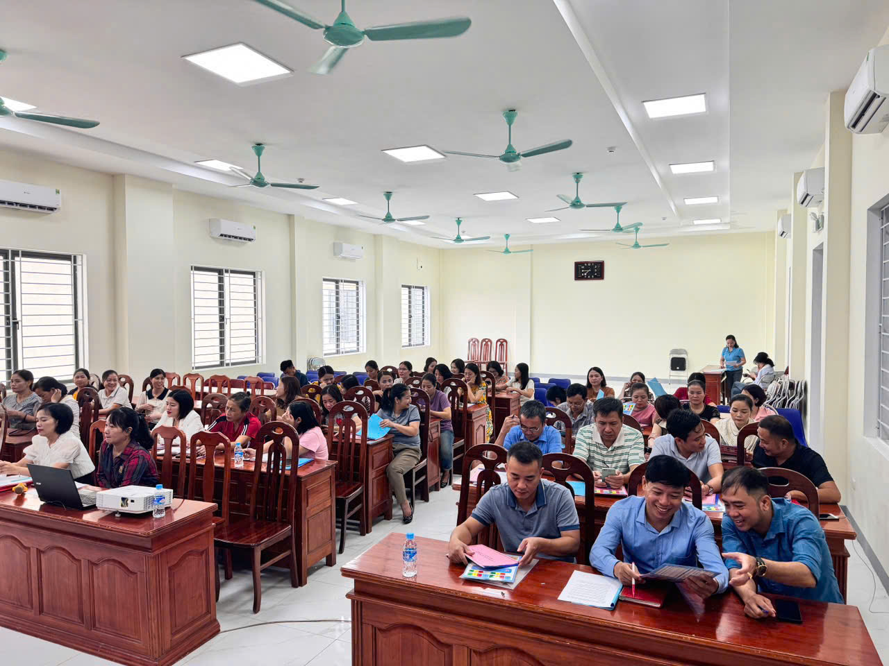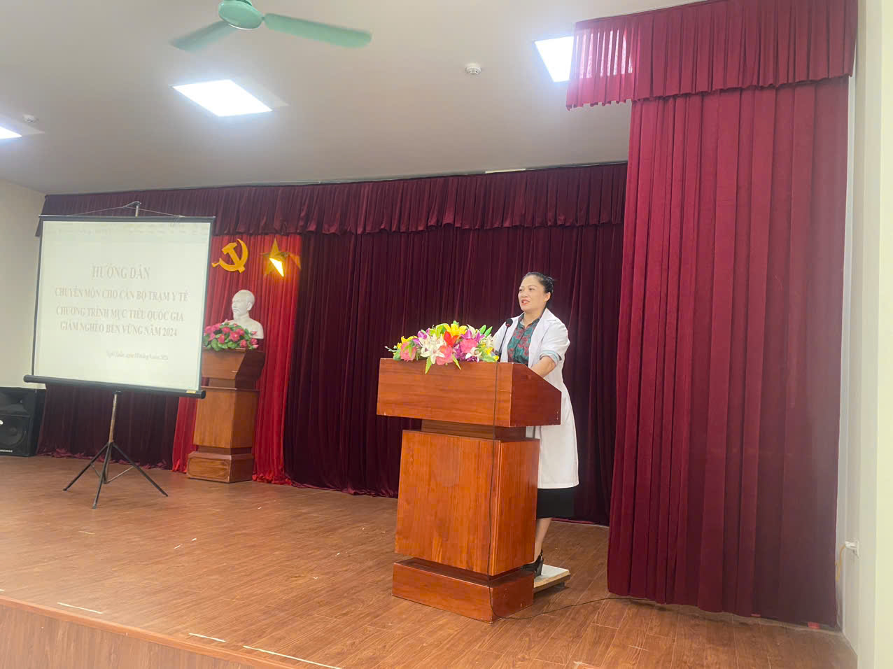 Đến dự lớp tập huấn có BS. Phạm Thị Hồng Lam, Phó Giám đốc Trung tâm Y tế, Cán bộ chỉ đạo tuyến khoa YTCC-DD&ATTP, Trưởng trạm Y tế, Thư ký Chương trình dinh dưỡng trạm Y tế, cộng tác viên 17 xã, thị trấn.