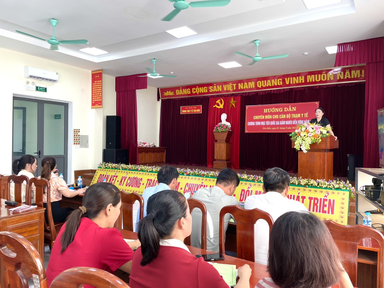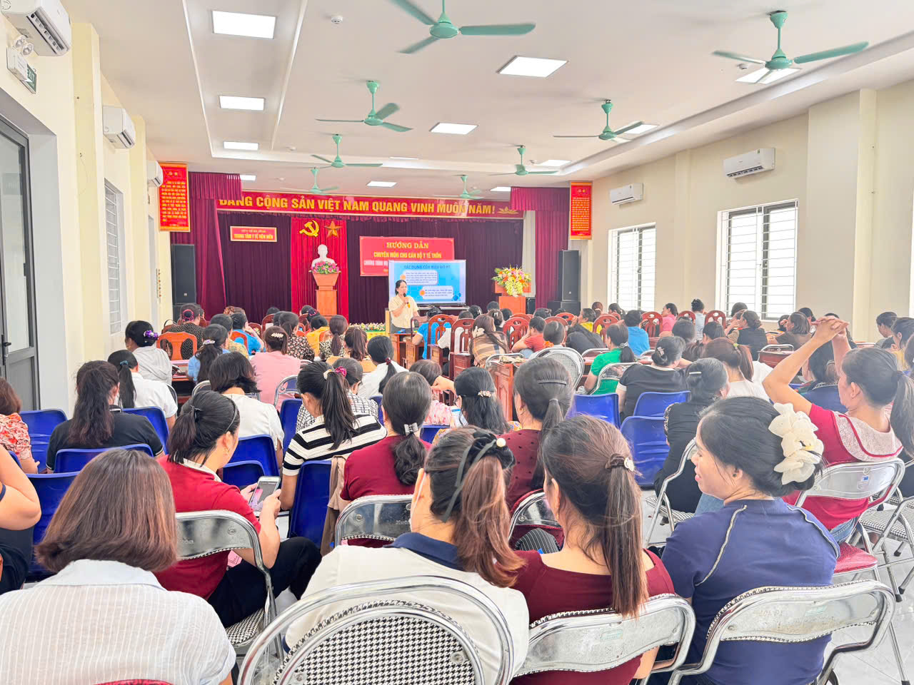 Tham dự lớp tập huấn có Bs. Phạm Thị Hồng Lam, Phó Giám đốc Trung tâm Y tế; Trưởng trạm, Thư ký chương trình dinh dưỡng, cán bộ phụ trách Y tế trường học tại Trạm Y tế và cộng tác viên y tế các thôn.