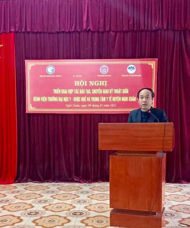 Sáng ngày 09/01/2021, Trung tâm Y tế huyện Nghi Xuân tổ chức Hội nghị triển khai hợp tác đào tạo, chuyển giao kỹ thuật giữa Bệnh viện Trường Đại học Y - Dược Huế và Trung tâm Y tế huyện Nghi Xuân